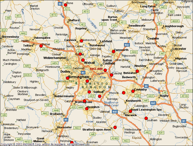| NB. All mileages are based on quickest driving times using Microsoft Autoroute | |||||||||||||||||||||||||