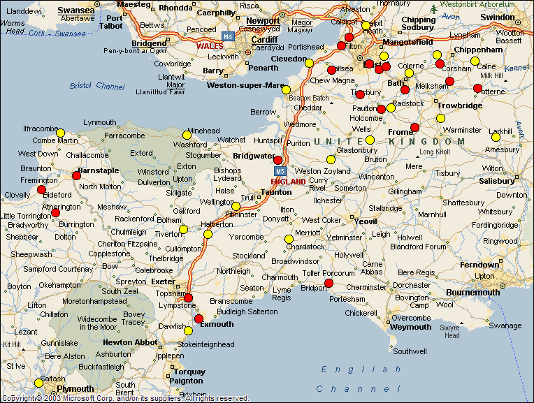 | NB. All mileages are based on quickest driving times using Microsoft Autoroute | |||||||||||||||||||||||
