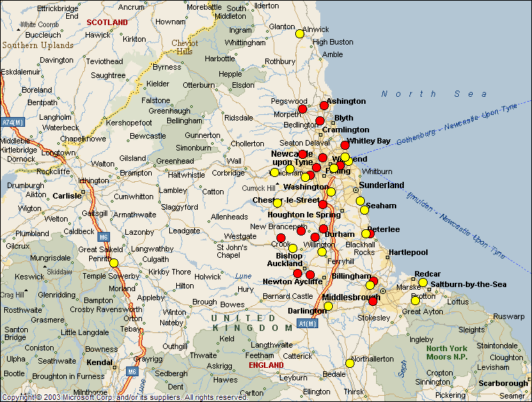 | NB. All mileages are based on quickest driving times using Microsoft Autoroute | ||||||||||||||||||||||||