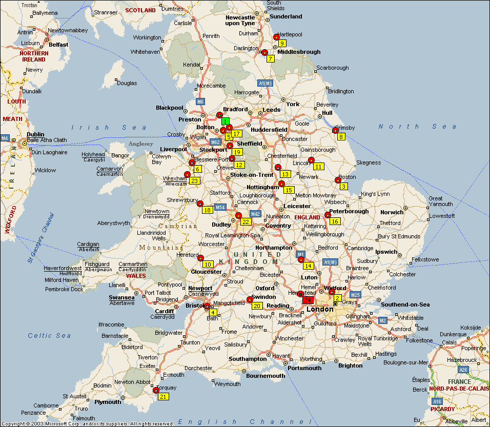 All mileages are based on quickest driving times using Microsoft