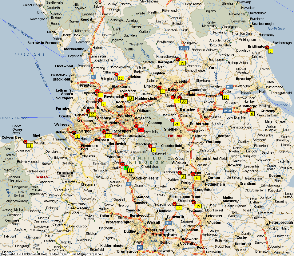 All mileages are based on quickest driving times using Microsoft