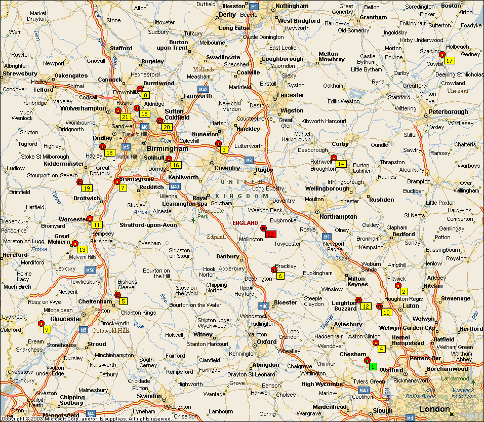 All mileages are based on quickest driving times using Microsoft Autoroute |