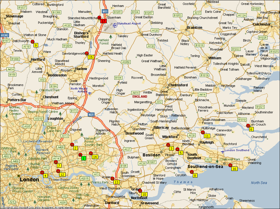 All mileages are based on quickest driving times using Microsoft Autoroute |